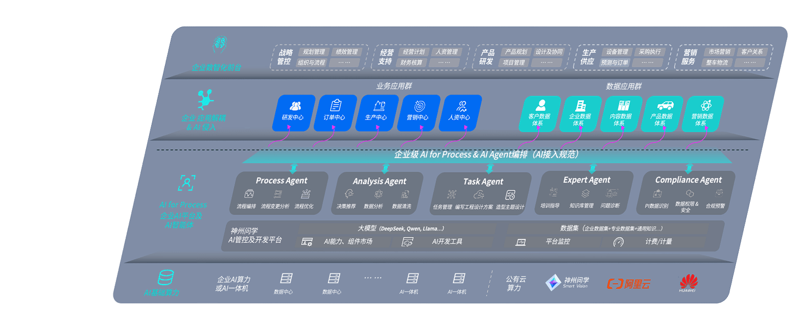 壹号平台问学智车解决方案是一套基于AI技术的汽车行业智能化系统,,覆盖从底层算力到顶层AI应用的全栈方案。。方案由算力层、、模型层和应用层组成:算力层,,方案支持多种一体机配置,,,,具备云端灵活部署、、多云适配以及动态优化计算资源的能力;模型层,,,壹号平台问学平台版提供了企业级AI应用一站式构建与管理平台,,,支持基于后训练强化技术的汽车企业专属模型的训练、、评测和运营;应用层,,壹号平台问学DeepSeek版提供包括超级员工、、智能招采、、、智能营销、、、、智能客服、、AI for BI等一系列解决方案,,,可助力汽车行业实现数字化转型,,让管理更智能、、、响应更敏捷。。。。