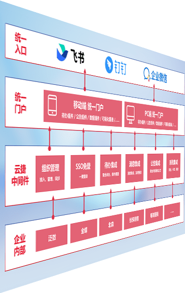 对协作平台提供支持服务,,,,支持企业应用与协作平台对接,,,包含组织同步、、、消息集成、、、待办集成等。。。支持目前主流的协作平台:钉钉、、、、企微和飞书。。。